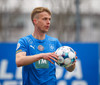 Kjartan Kári fær boltann vinstra megin og á fyrirgjöf sem Árni Snær grípur og lætur sig falla og vinnur sekúndur fyrir Stjörnuna.