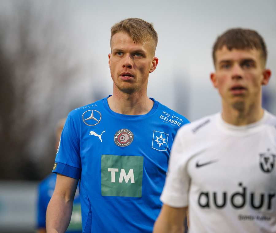 Mikið um stopp hérna síðustu mínútur. Örvar Eggertsson liggur eftir og virðist vera að koma af velli.