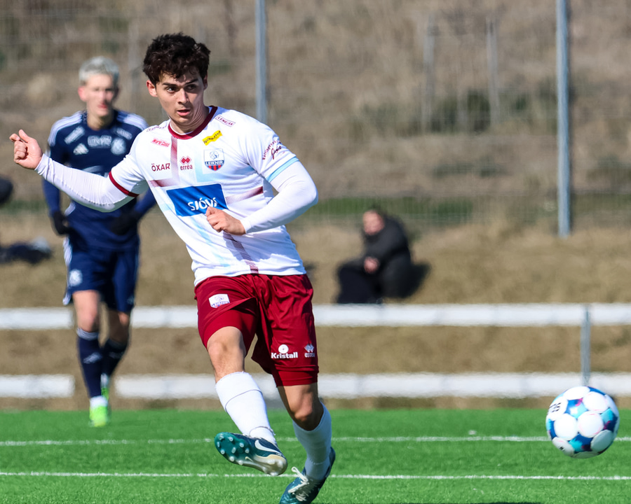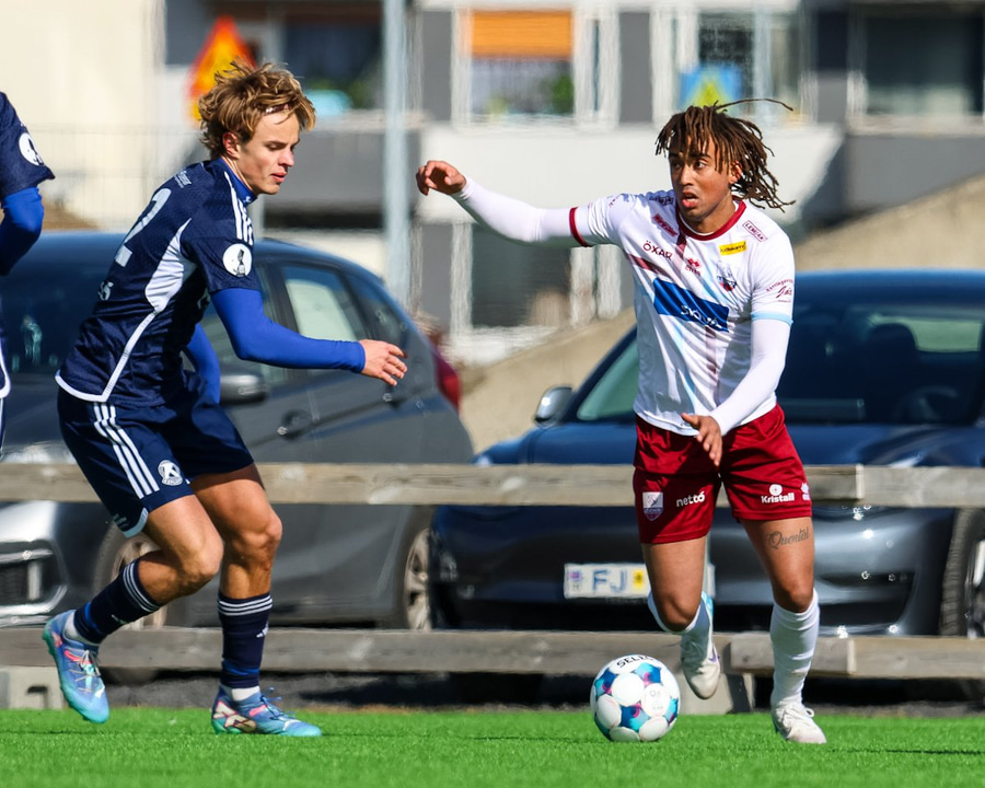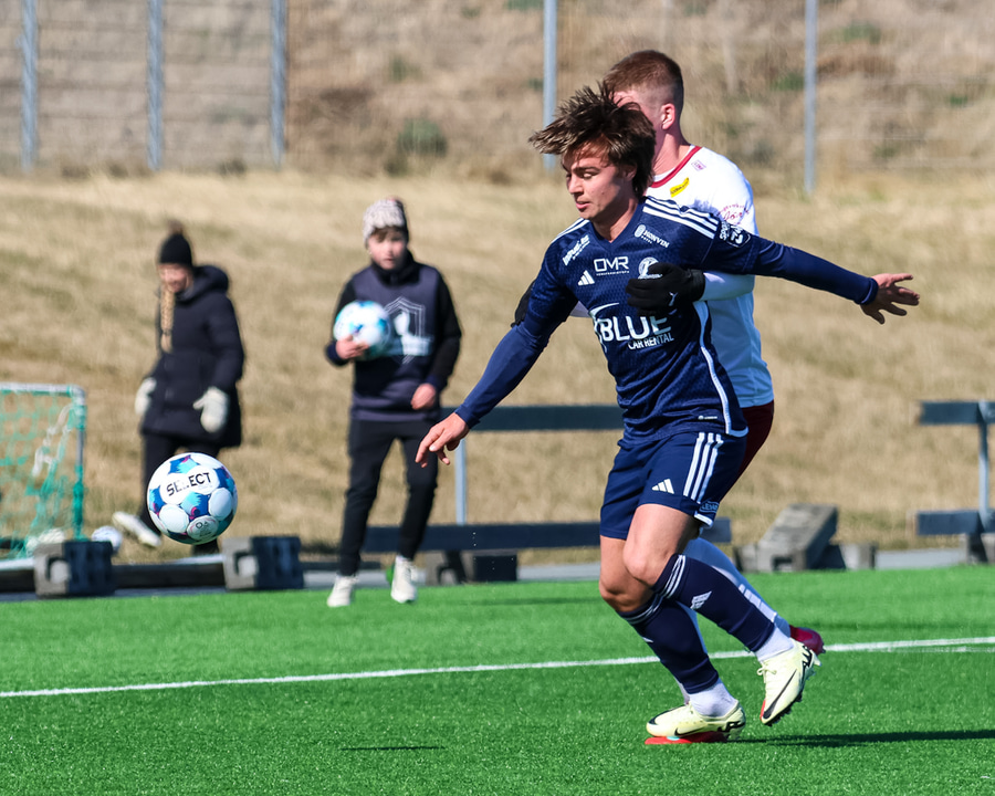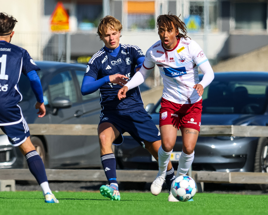 Gabríel kemst í fínt færi en setur boltann naumlega framhjá.