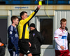 Aðstoðarþjálfari Leiknis fær gult fyrir mótmæli.