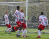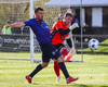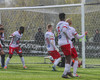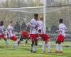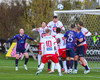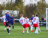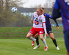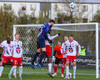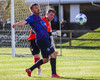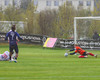 Fyrirgjöf frá vinstri og Sigfús Fannar er aleinn í teignum og skallar í slá og inn.