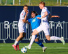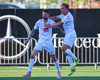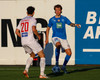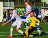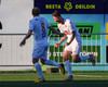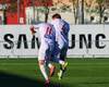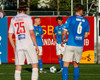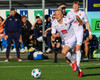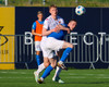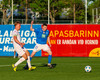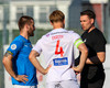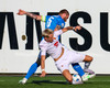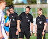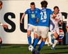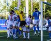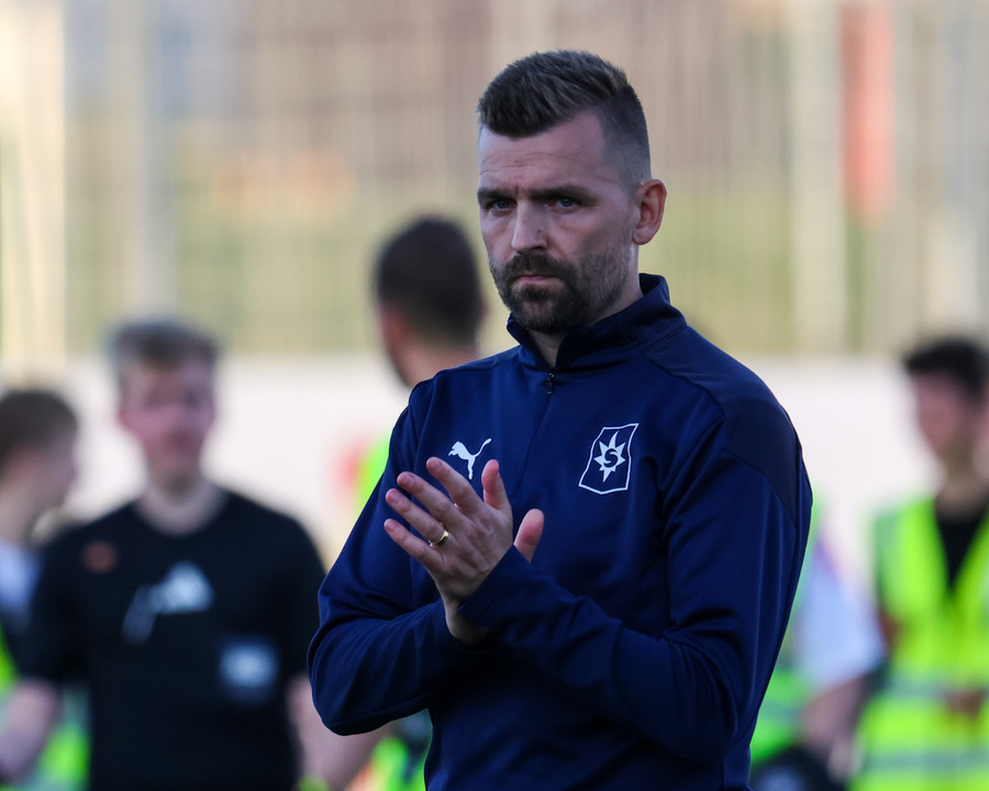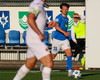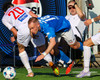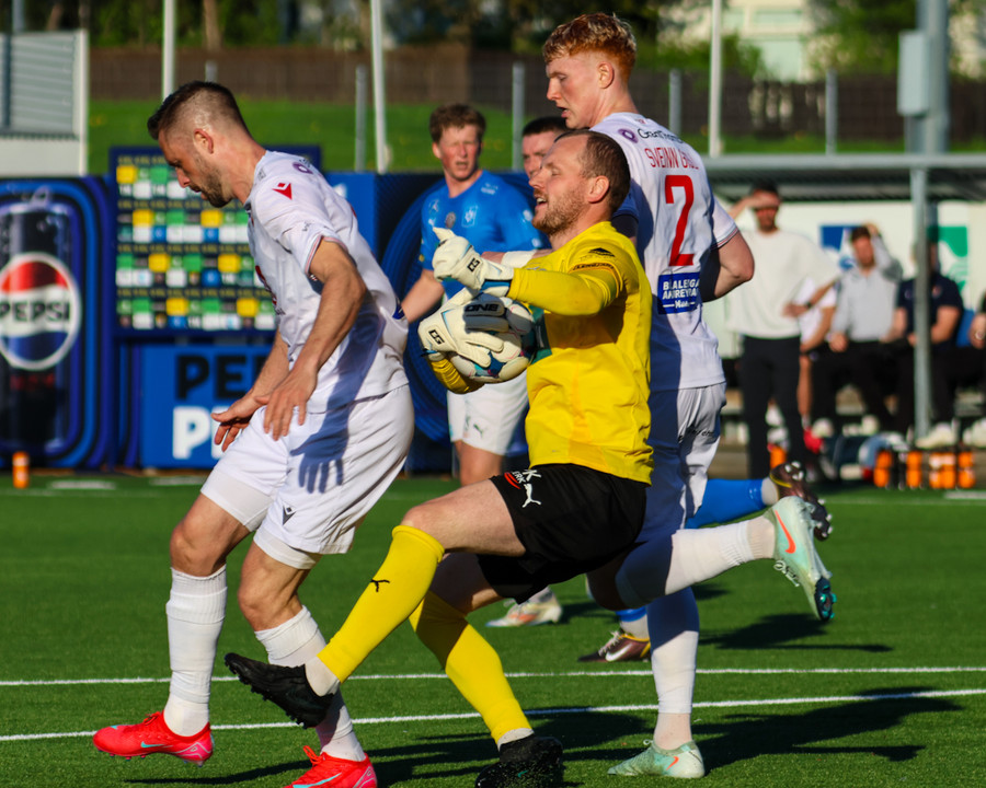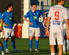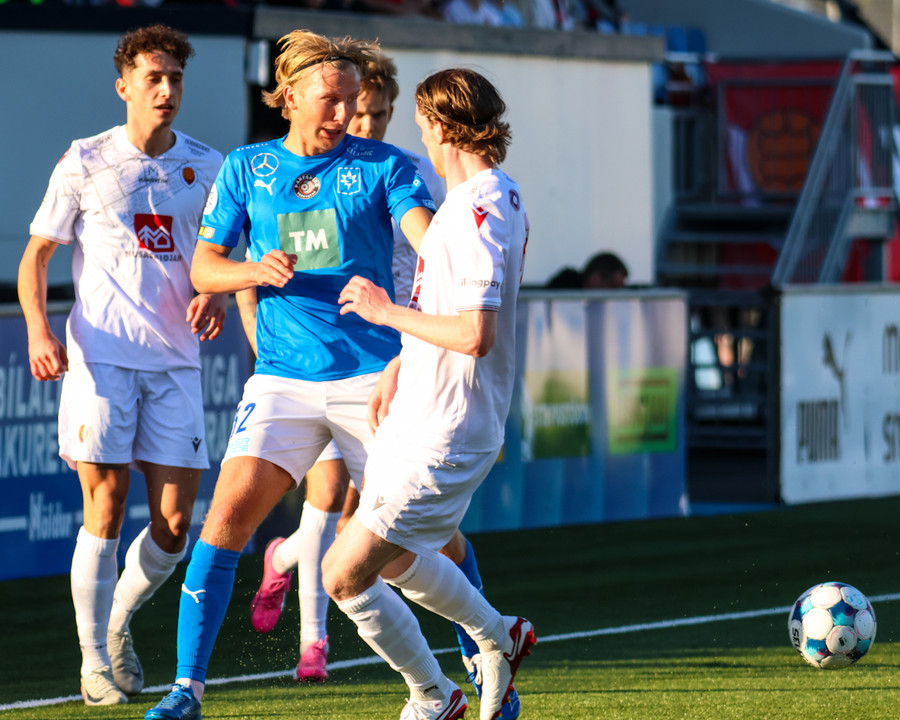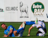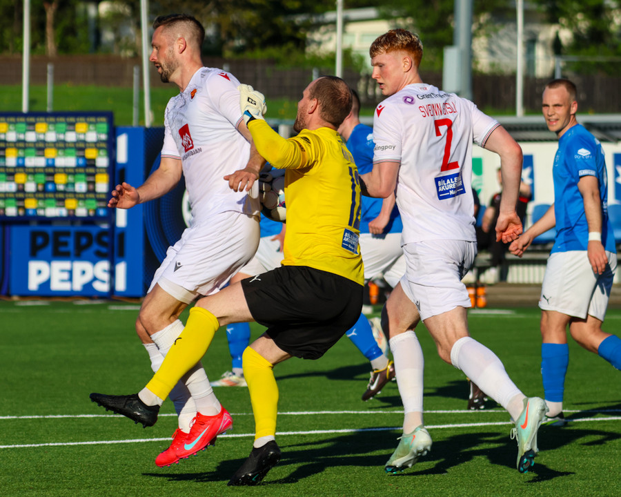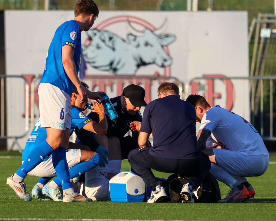 Daníel Finns fær aðhlynningu eftir að Gunnar Vatnhamar neglir boltanum í andlitið á honum. Tarik lætur Daníel heyra það í kjölfarið, óþarfi.