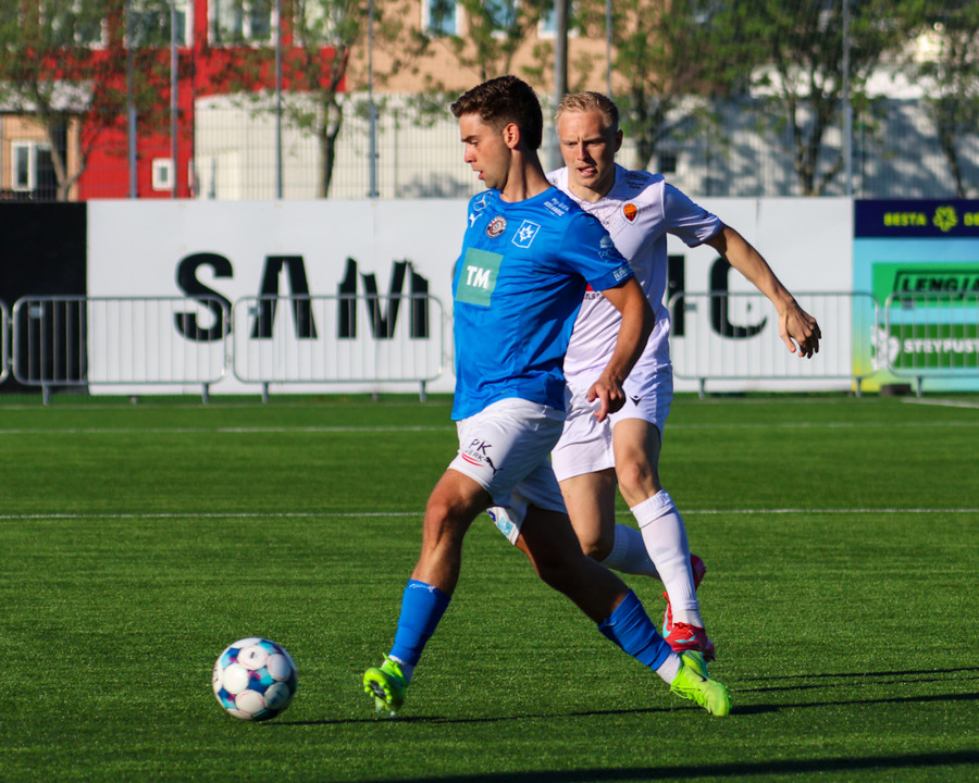 Viktor Örlygur keyrir upp kantinn og gefur fínan bolta fyrir en Sindri kemur honum í horn.