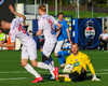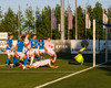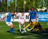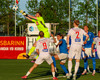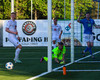Helgi neglir boltanum inn á teiginn og Stígur á skot sem fer á einhvern ótrúlegan hátt ekki inn í markið.