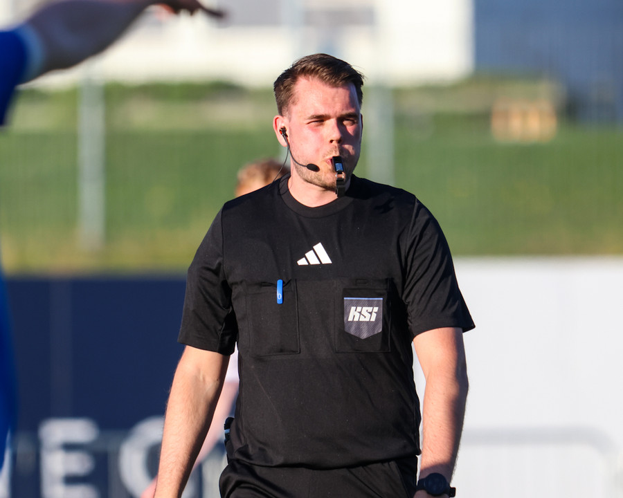 Dómari leiksins, Þórður Þorsteinn Þórðarson eða ÞÞÞ, eins og hann er oftast kallaður hefur flautað leikinn í gang!