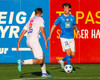 Gylfi Þór teiknar stórkostlegan bolta beint á pönnuna á Stíg Diljan, sem nær fínum skalla en Árni ver vel frá honum. Þetta tvíeyki er að valda stórkostlegum usla.