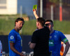 Samúel uppsker gult spjald fyrir að sparka boltanum í burtu, þegar gestirnir fengu innkast. Lætur svo nokkur vel valin orð falla í kjölfarið.