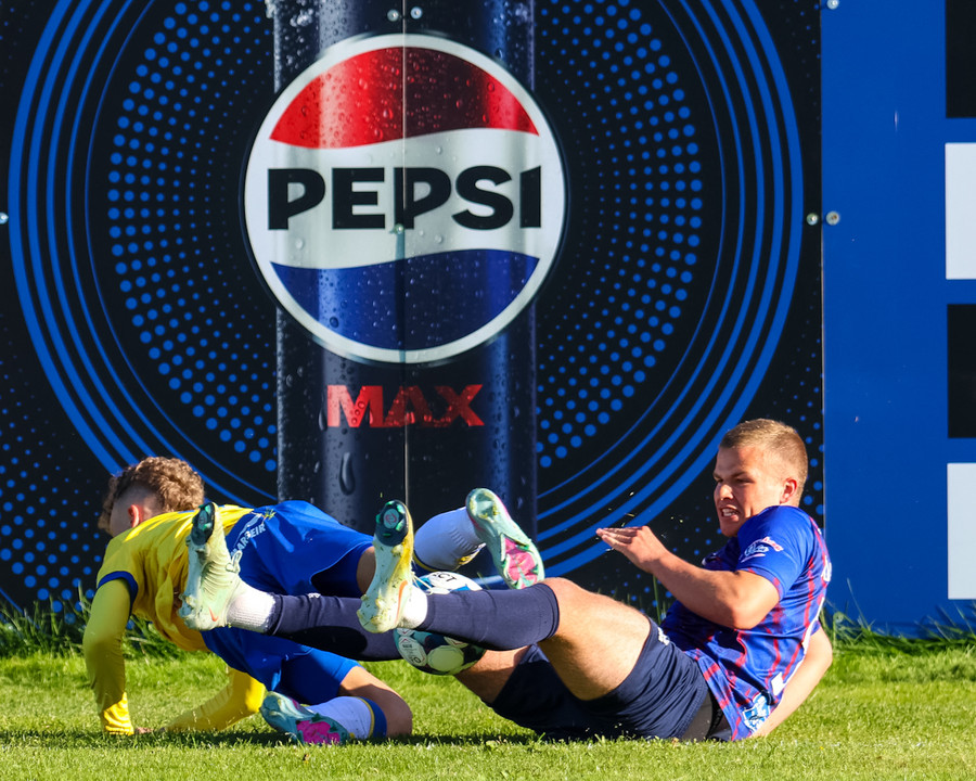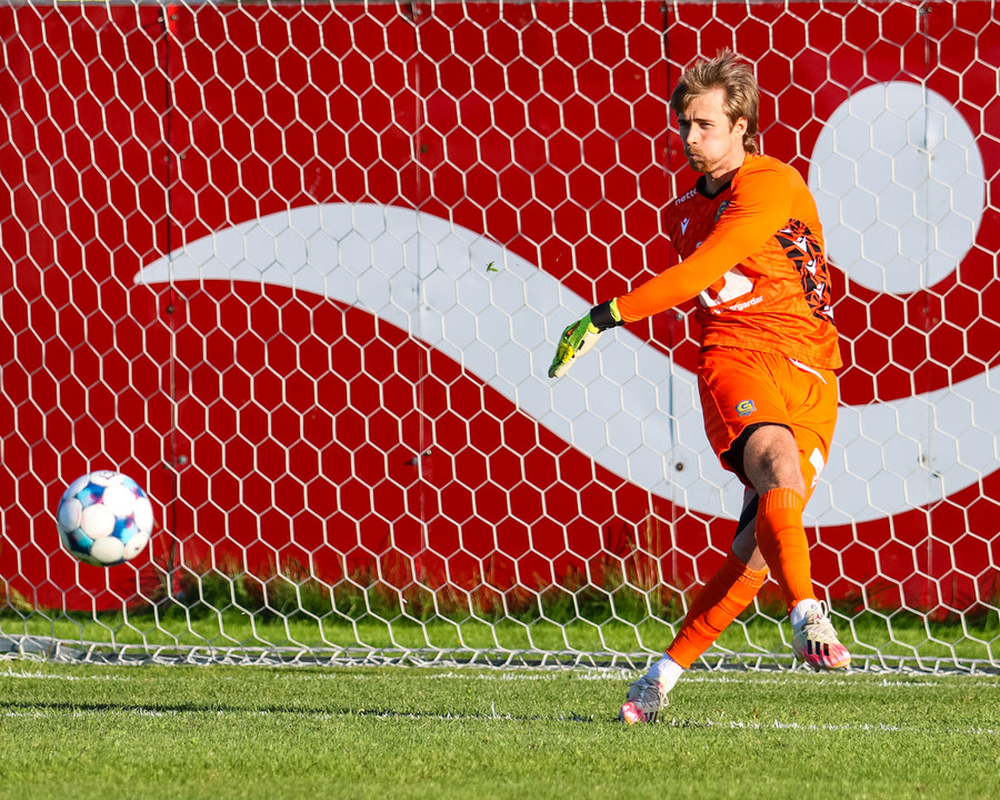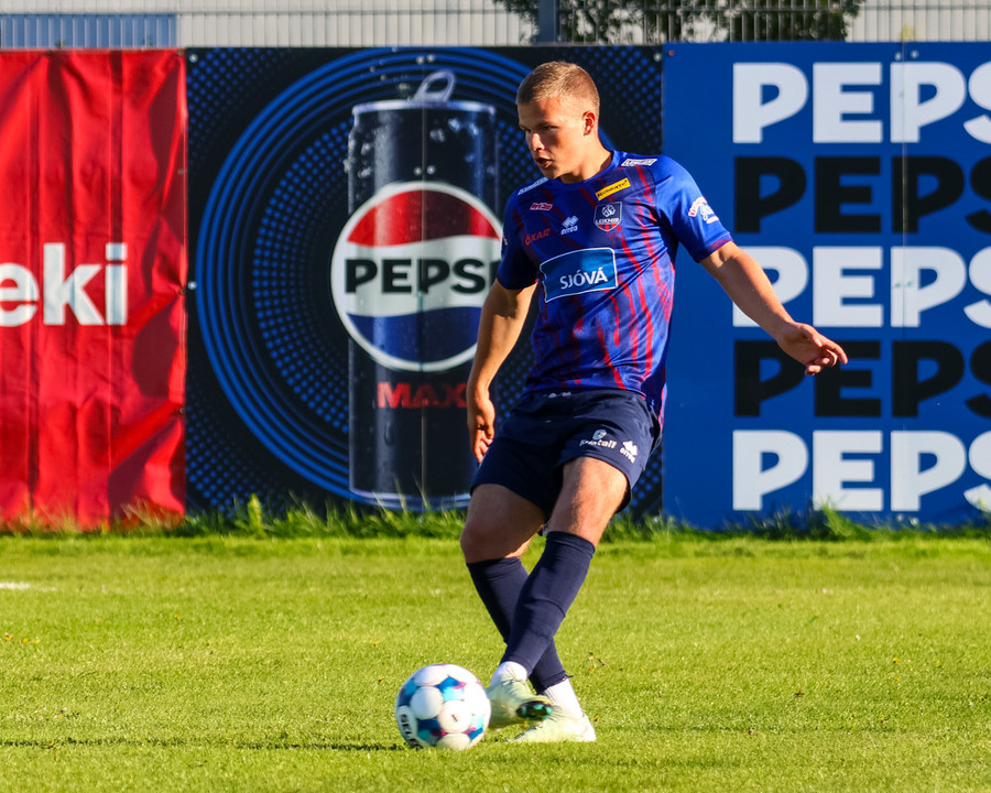 Breki tekur spyrnuna en boltinn í vegginn.