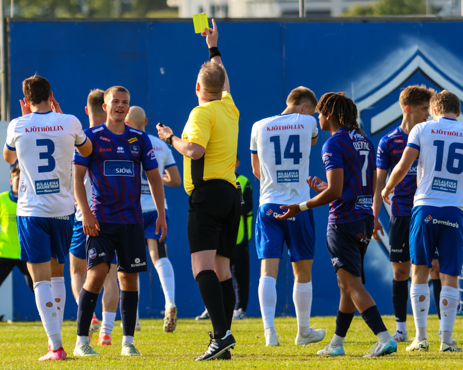 Gult spjald: Dusan Brkovic (Leiknir R.)