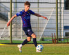 Emil Nói fær boltann með bakið í markið og tekur skotið í fyrsta en boltinn endar lengst upp í brekku.