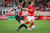 Aron Sig gerir frábærlega á vinstri vængnum og kemur með bolta fyrir markið á Eið Gauta sem skallar boltann rétt framhjá markinu.