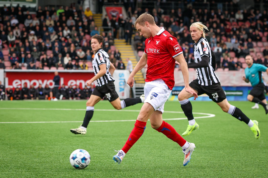Valsarar vinna boltann á miðjum vellinum og Lúkas er skyndilega kominn aleinn í gegn á móti Halldóri Snæ og klárar frábærlega framhjá honum.