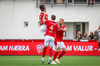 Tryggvi með stórkostlega spyrnu inn á teiginn og það er Markus Nakkim sem skallar boltann fyrir markið á Patrick Pedersen sem er á fjærsvæðinu. Hann kemur boltanum fyrir markið á Kristin Frey sem klárar og kemur Valsmönnum yfir.