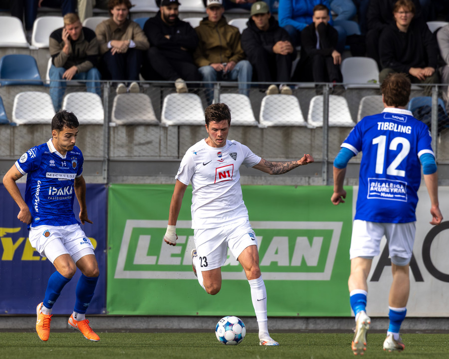 Langur bolti upp völlinn á Magnús Inga sem er kominn einn í gegn. Jovan Mitrovic gerir vel í að elta hann og nær góðri tæklingu þar sem hann tæklar boltann í Magnús. Marcel kemur úr markinu og er á undan Magnúsi í boltann.