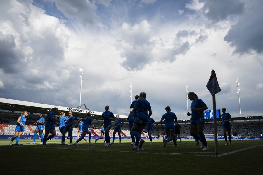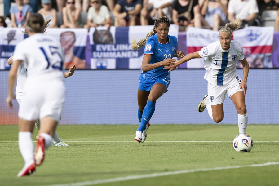Finnar skalla frá og fá á einhvern furðulegan hátt innkast þrátt fyrir að hafa sett boltann sjálfar út af.