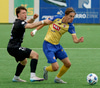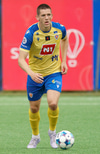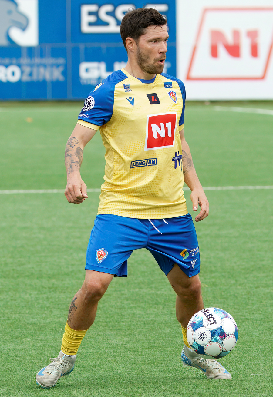 Marko Vardic nær að brjóta sér leið inn á teiginn. Reynir fyrirgjöf en boltinn of nálægt Stubbi sem grípur hann.