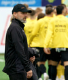 Fyrirgjöf frá hægri frá KA mönnum, Skagamenn í smá vandræðum með að koma boltanum frá en hann endar í markspyrnu.