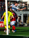 Stórkostleg fyrirgjöf frá Kjartani á vinstri kantinum og Sigurður stekkur hátt til að ná þessum skalla. Stýrir þessu svo vel í hornið!
