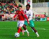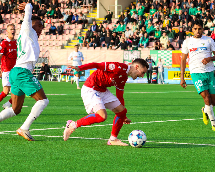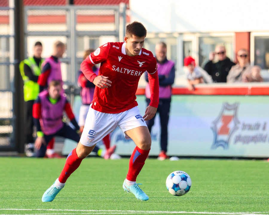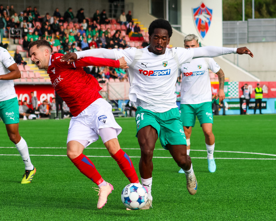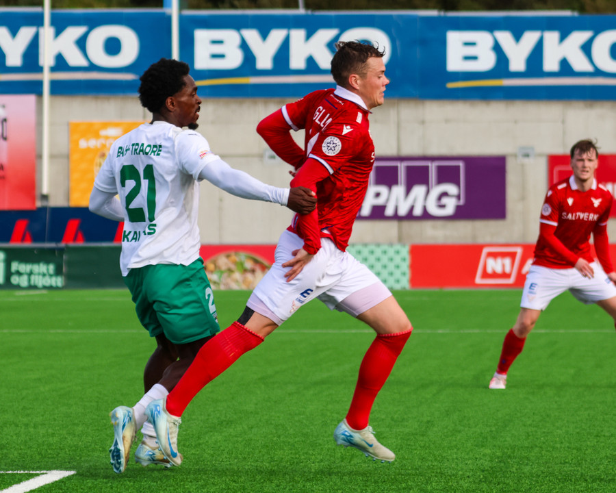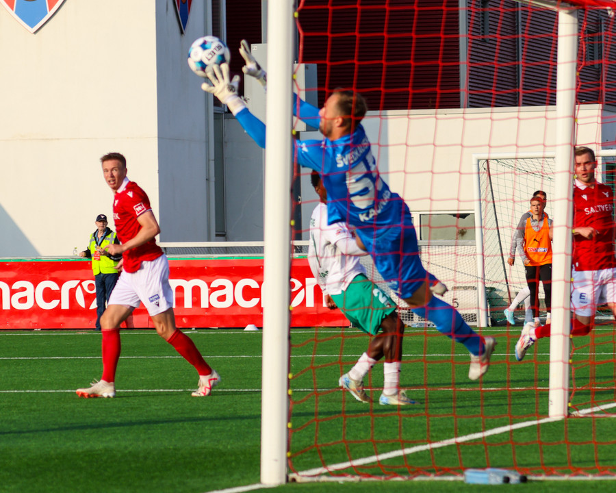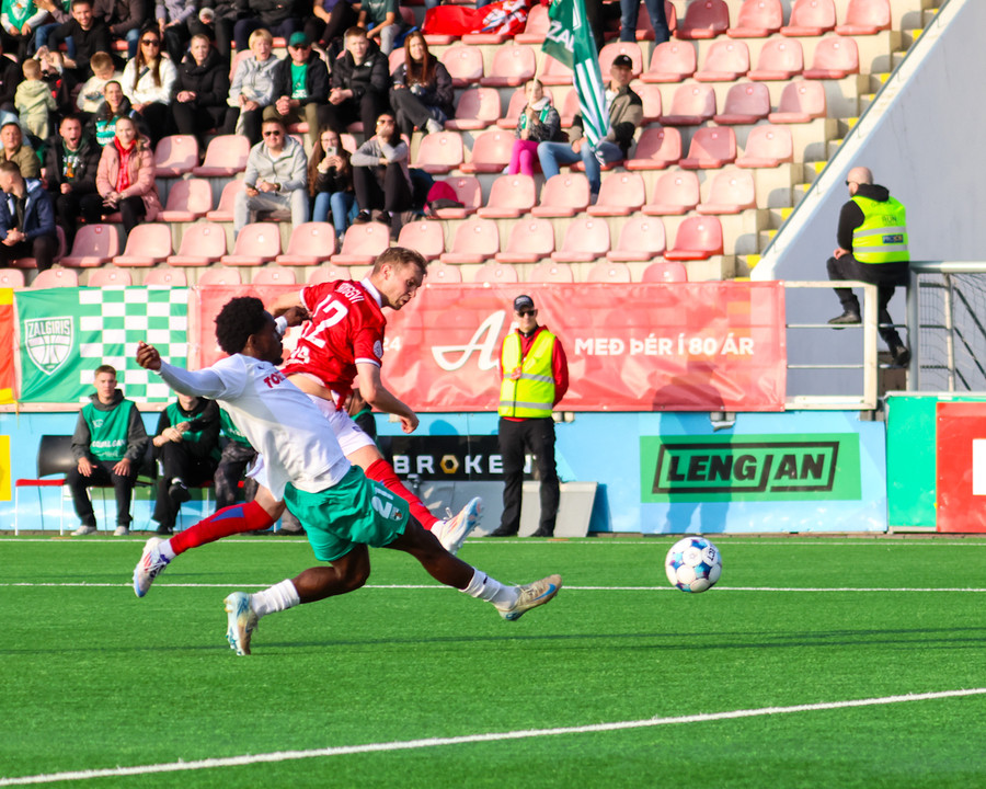 Amine kemur boltanum fyrir á Temur sem er við það að skjóta boltanum á markið en þá mætir Bjarni Mark til bjargar og gerir frábærlega að fara fyrir skotið.