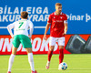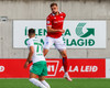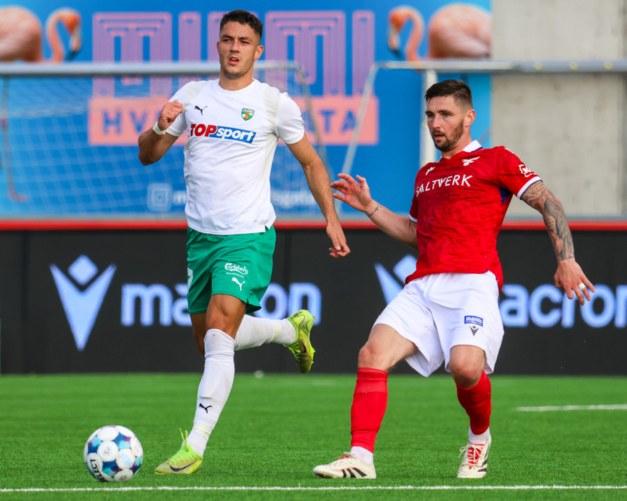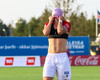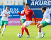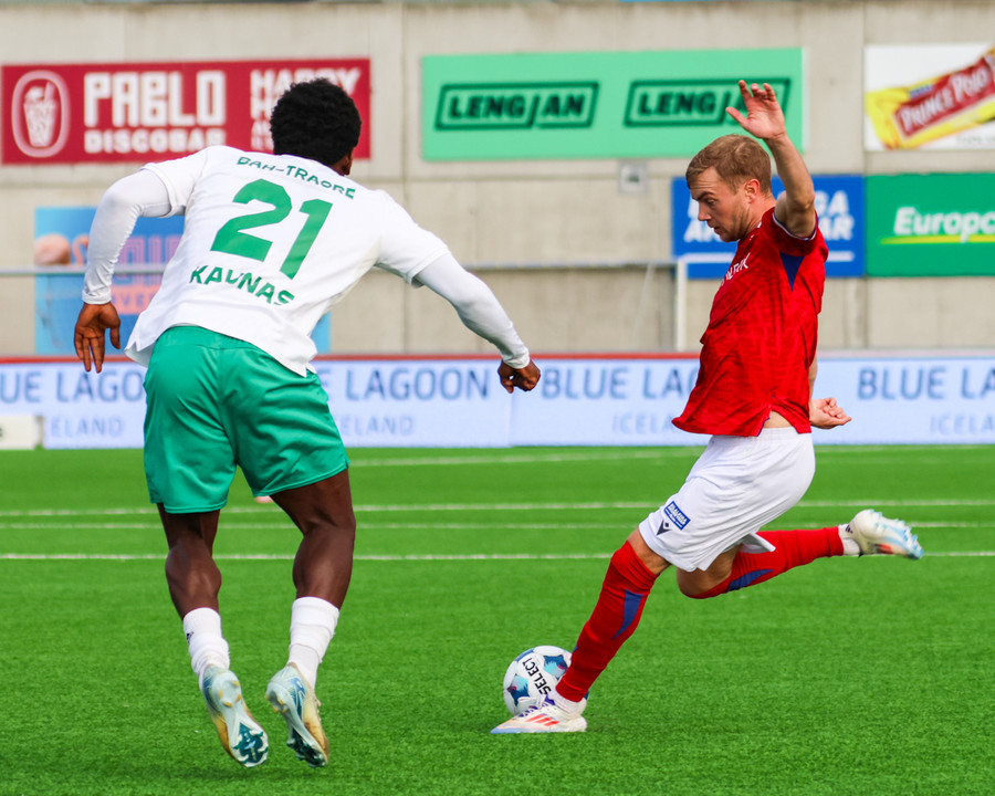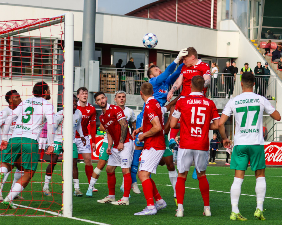 Adam Ægir tekur spyrnuna inn á teiginn og Zalgiris hreinsa, Lúkas tekur svo skotið sem fer langt yfir.