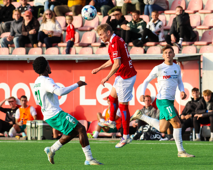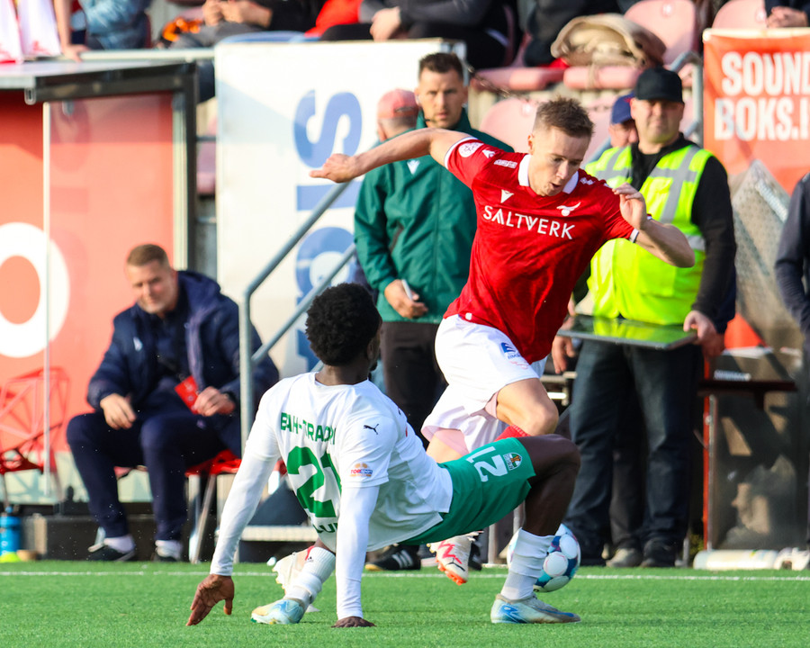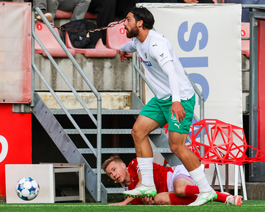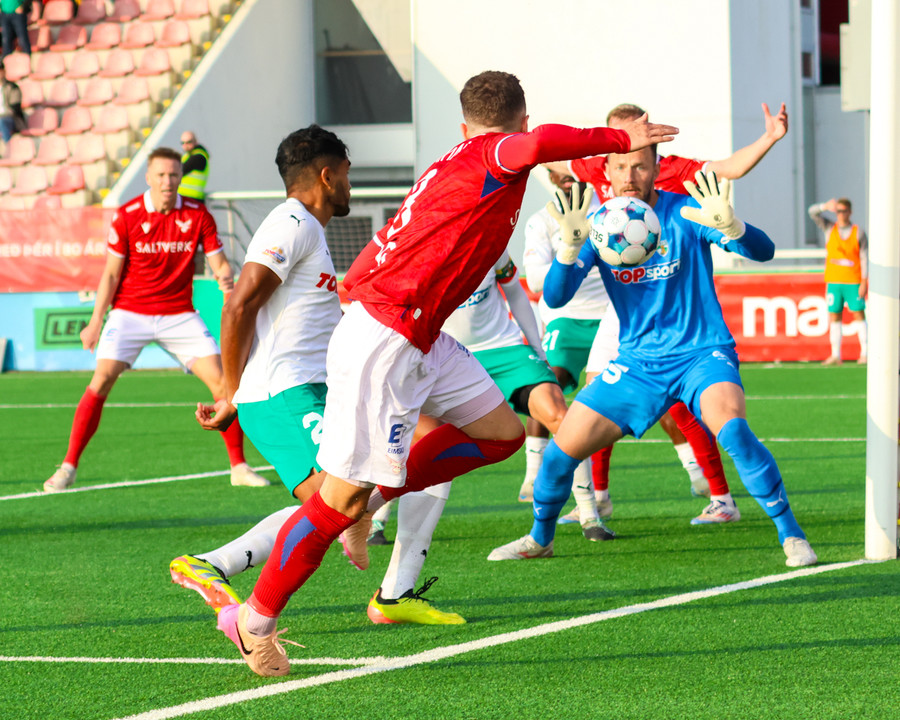 Temur er enn eina ferðina kominn einn í gegn og á bara eftir að rúlla boltanum framhjá Frederik í markinu en skotið fer rétt framhjá. Hvernig gestirnir eru ekki búnir að skora fleiri mörk er bara ransóknarefni.