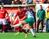 Fær boltann við vítateigslínuna og tekur skotið í fyrsta sem Tomas ver í horn. Það liggur mark í loftinu hérna!