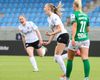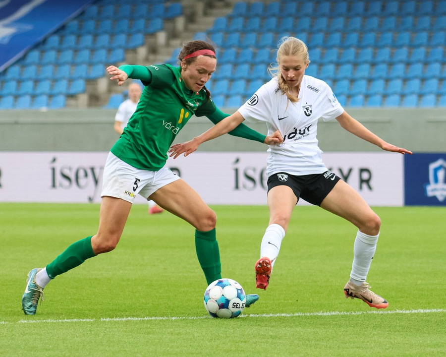 Maya Hansen fær boltann við vítateigslínuna og tekur skotið hátt yfir markið í staðinn fyrir að rúlla boltanum út á besta leikmann vallarins, Thelmu Karen.