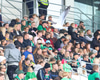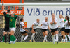 Leikmenn fara að lappa inn á, það er alvöru stemning í stúkunni!