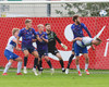 ÍRingar með skalla frá horni, Ólafur ver hann af línunni en ÍRingar vilja meina að hann hafi verið inni, ég held ekki