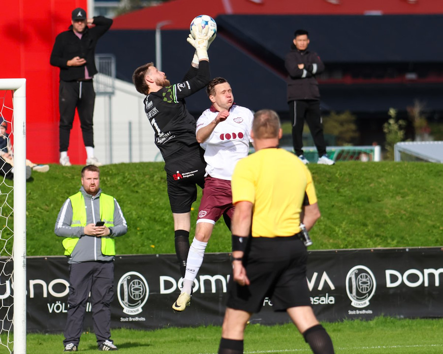 Brynjar með neglu en nautsterkar hendur Ólafs í markinu. ÞVÍLÍK VARSLA!!