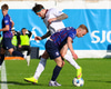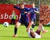 Hörkufæri, Aron fer í gegnum pakkan og nær af skoti nálægt markinu en fer yfir.