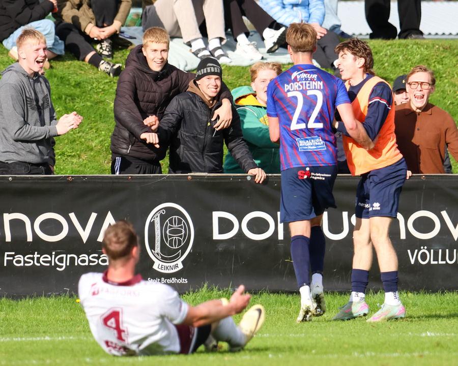 Aukaspyrnan tekinn stutt og eftir smá bras nær Sindri að finna Þorstein í teygnum sem klárar þetta snyrtilega.
