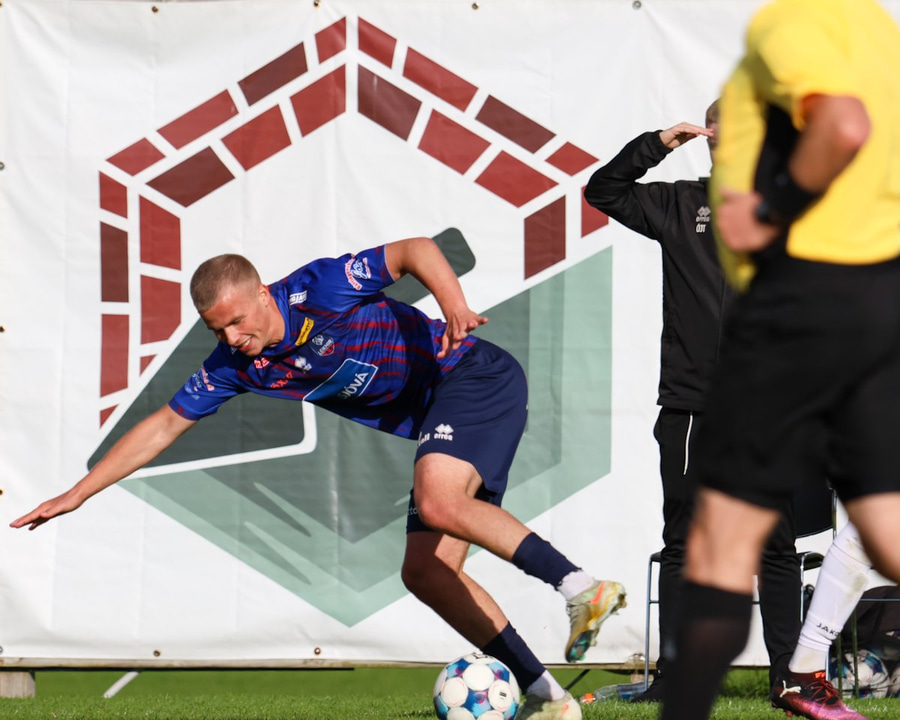 Axel Freyr sem bjargaði aukaspyrnunni og kom boltanum aftur í hættusvæðið