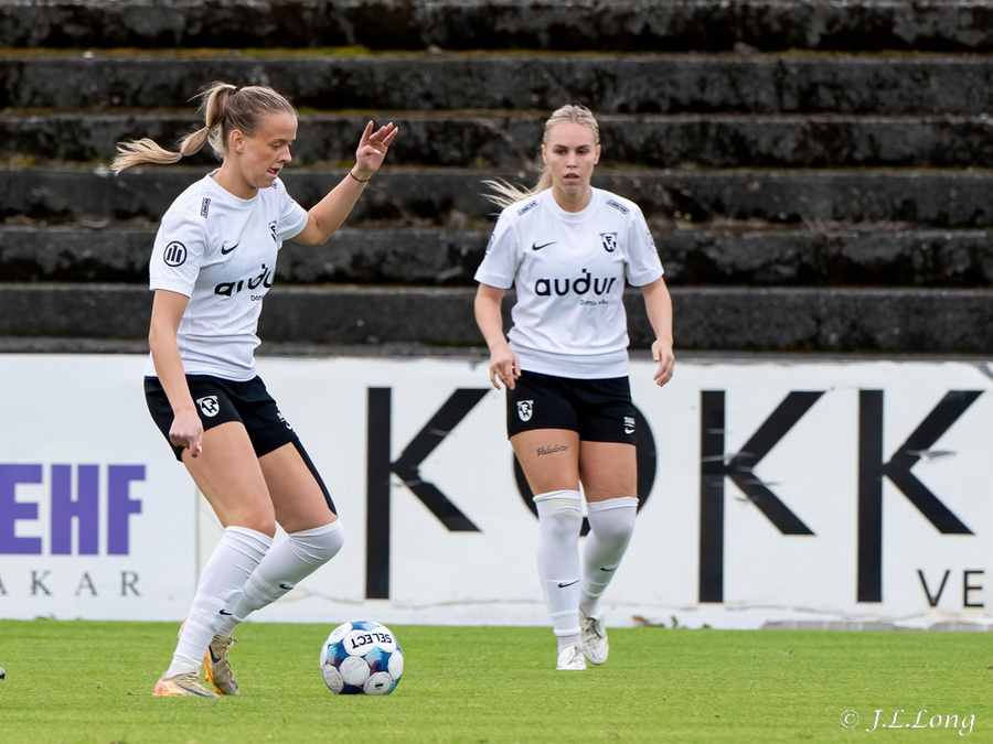Eva Ýr kominn hér langt fyrir utan teig og Thelma Karen kemst inn í sendinguna frá henni boltinn dettur á Mayu Hansen sem reynir skot en það er langt framhjá