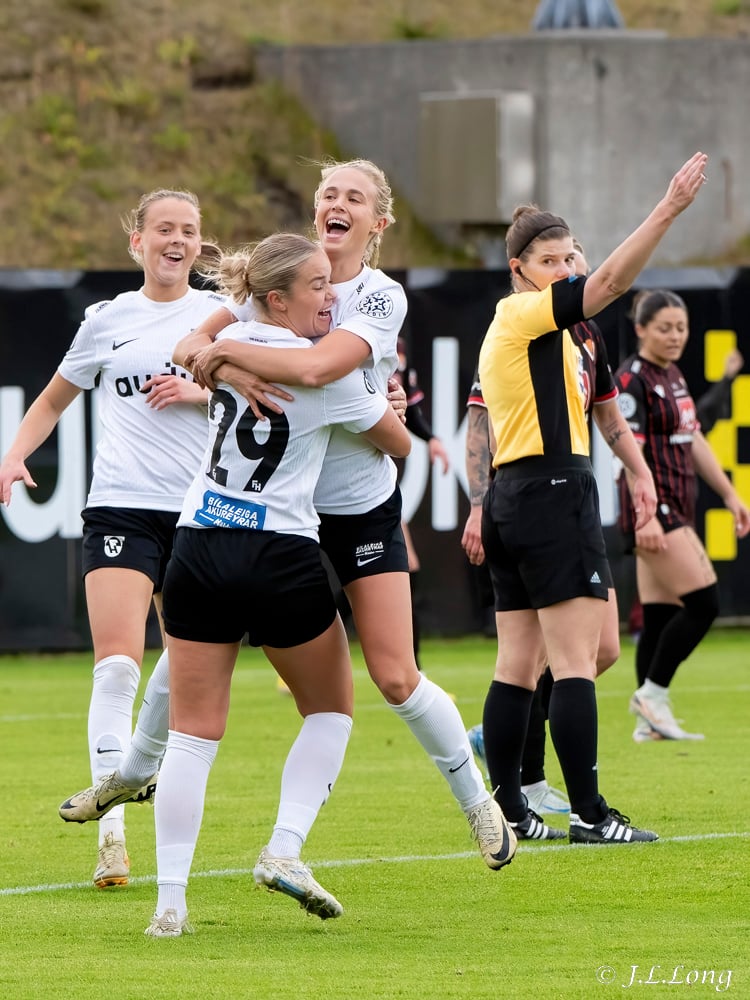 Víkingar taka hér horn sem FH skallar í burtu beint á Bergdísi sem lyftir boltanum aftur inn í teig og Linda Líf klára vel