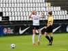 Berglind Freyja kemur boltanum út á Thelmu Karen sem reynir að koma boltanum fyrir en það nær engin til boltans