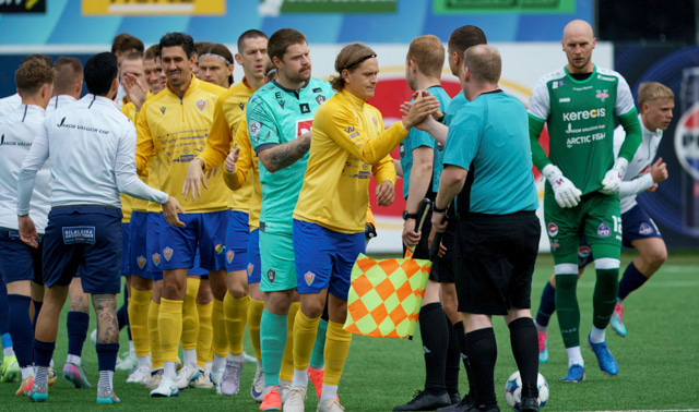 Gunnar Jónas Hauksson á erfitt verkefni fyrir höndum. Hann er að öllum líkindum að dekka Birni Snæ Ingason eða Hallgrím Mar, það öskrar á gult, Gunnar Jónas fær gult spjald er 4 í stuðul á Epic, skemmtilegt.
