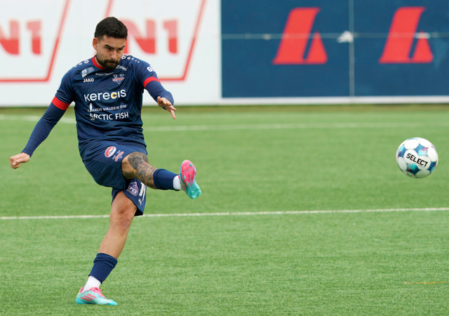 Frábær sending inn fyrir á Viðar Örn sem er kominn einn í gegn en hann misreiknar boltann eitthvað og færið rennur út í sandinn.