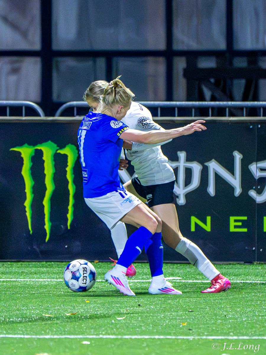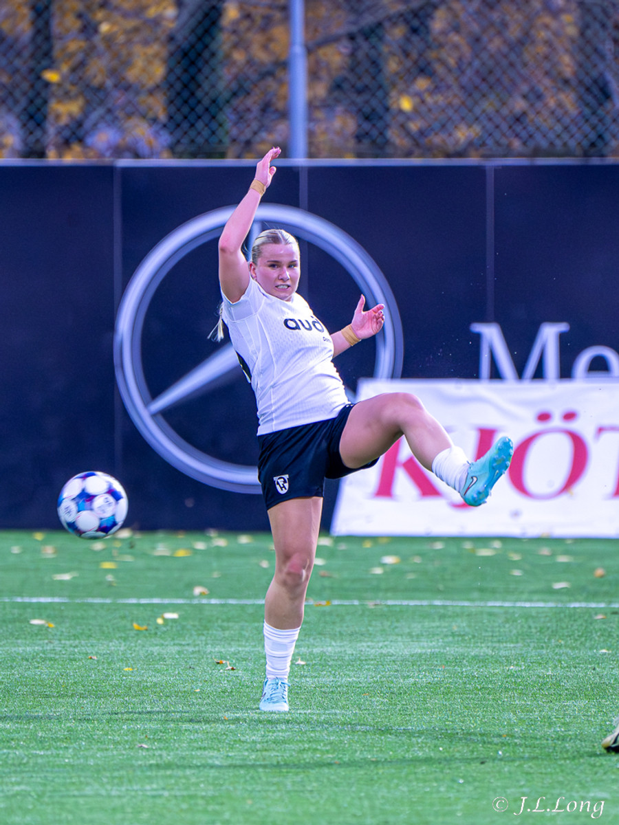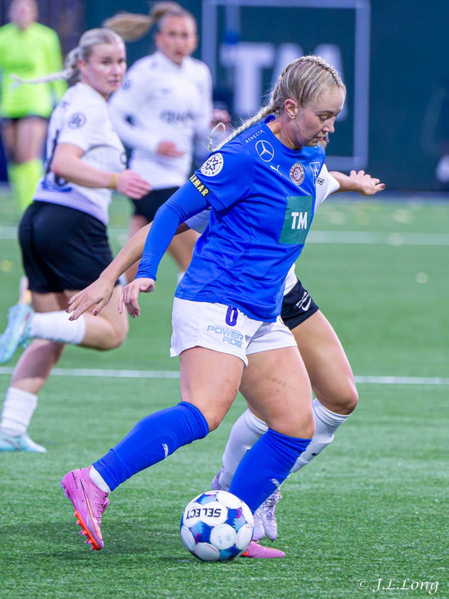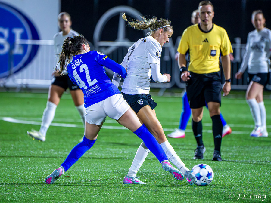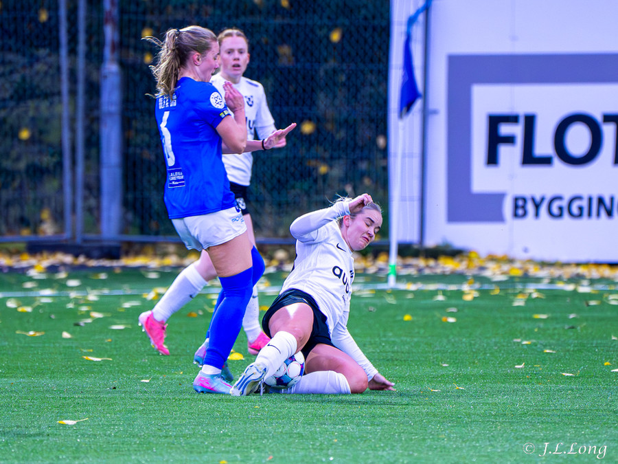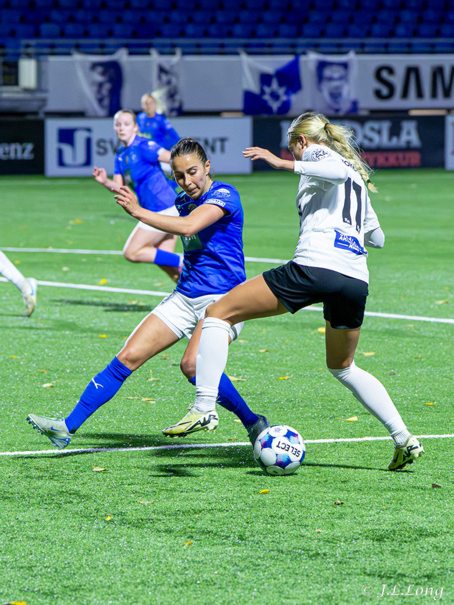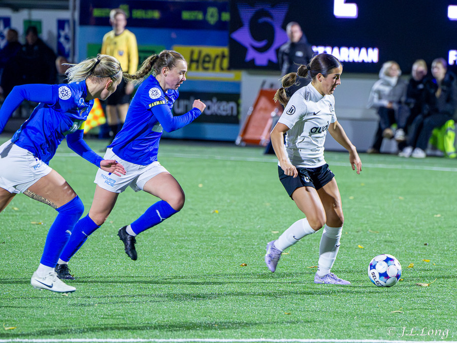 Léleg sending frá Örnu Dís sem átti að fara á Hassett en Thelma kemst í hann og kemst í 1v1 á móti markmanni og skorar