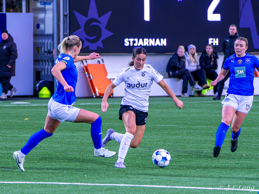 ,,Þetta verður spennandi leikur þar sem bæði lið hafa verið að spila vel. FH vill ná 2. sætinu og mikið í húfi. Þetta verður opinn leikur og mikið sótt à báða bóga. Ingibjörg Lúcía kemur Stjörnunni yfir með frábæru skoti en FH nær að jafna með marki frá Thelmu Kareni. Hún tryggir svo sigurinn með alvöru liðsmarki, beint af æfingasvæðinu."