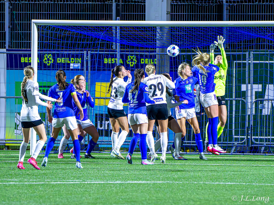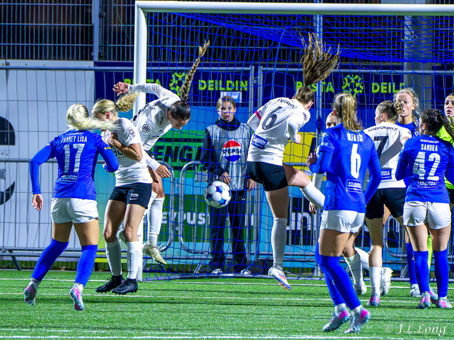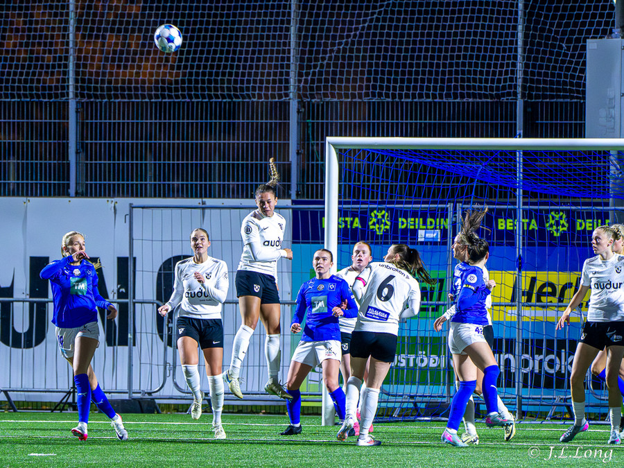 Inigbjörg með skot í stöngina og Birna nær að skalla í opið markið