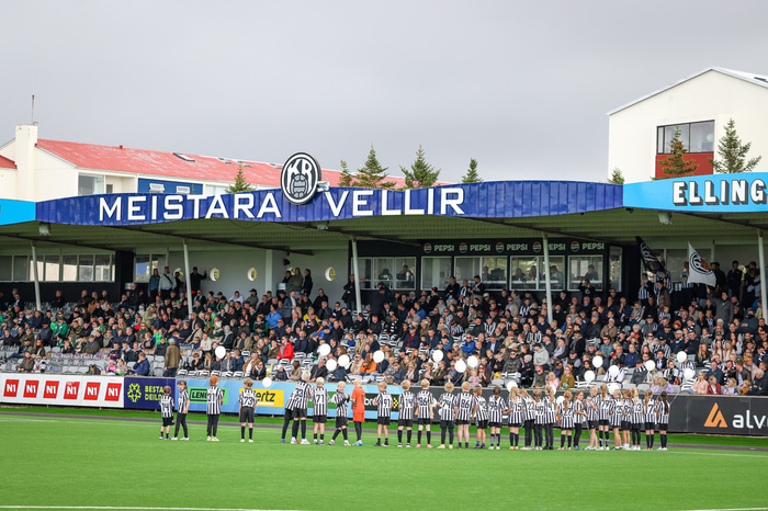 Heyr mína bæn í græjunum, stúkan að fyllast og liðin ganga til vallar. Það stefnir í veislu.