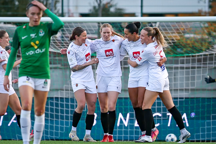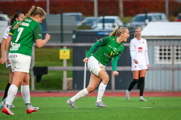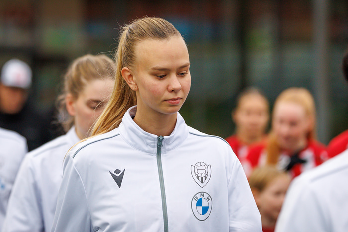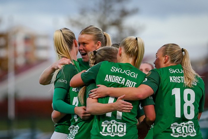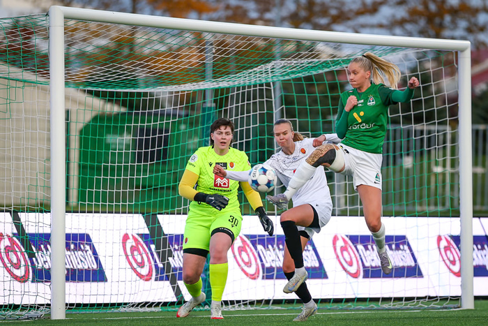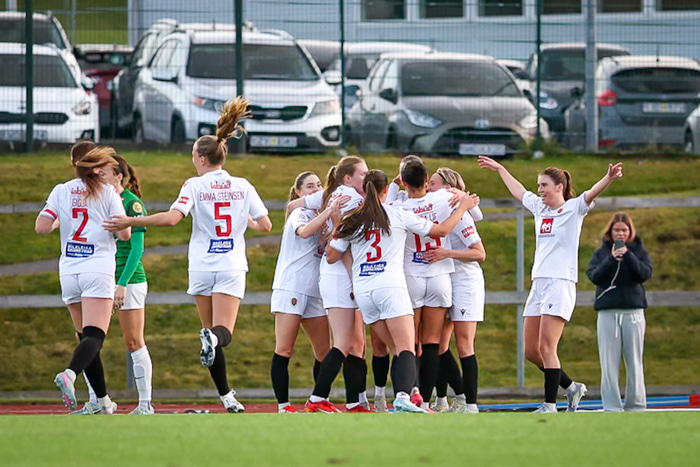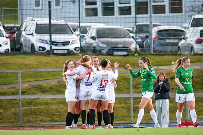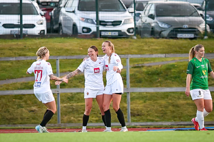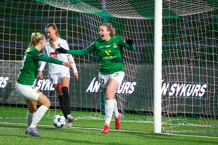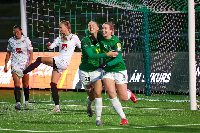 Varamennirnir Edith og Hrafnhildur Ása gera mjög vel. Ása komin í dauðafæri til að skora en setur boltann fram hjá markinu.