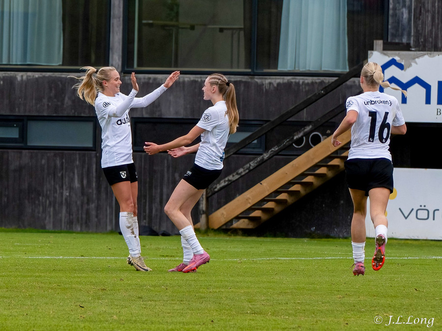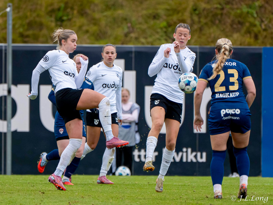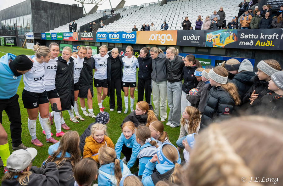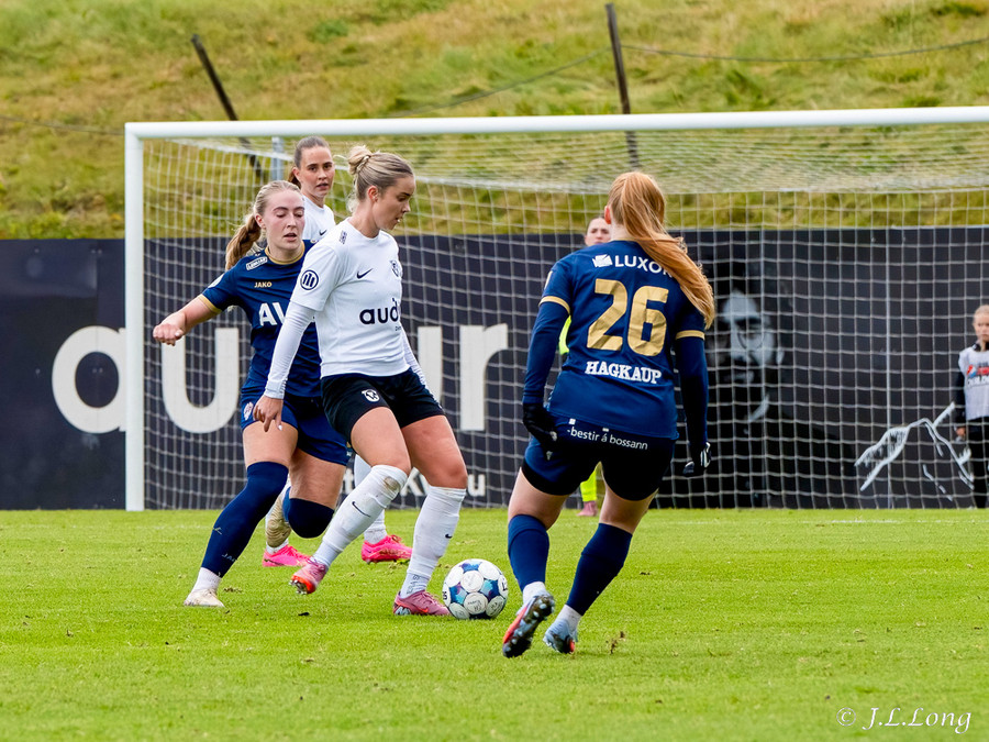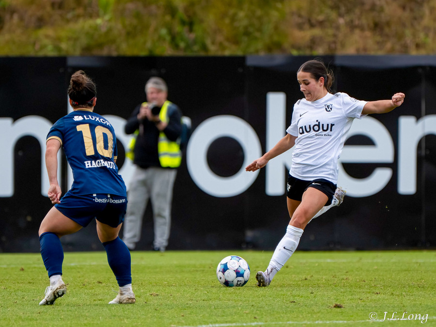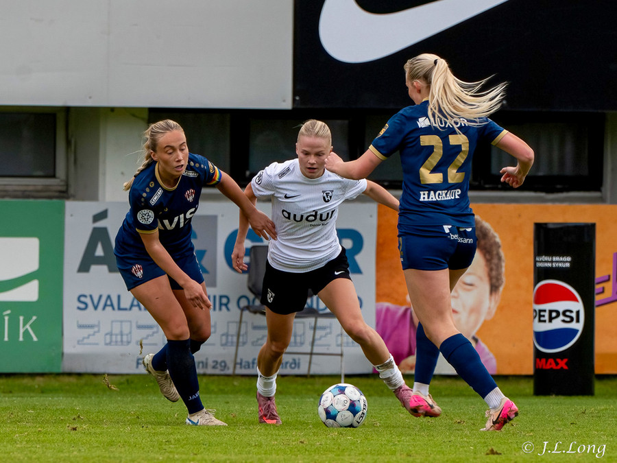 Valgerður á hér skot í fjærstöngina, boltinn kemur til hennar aftur og þá setur hún hann í nærstöngina