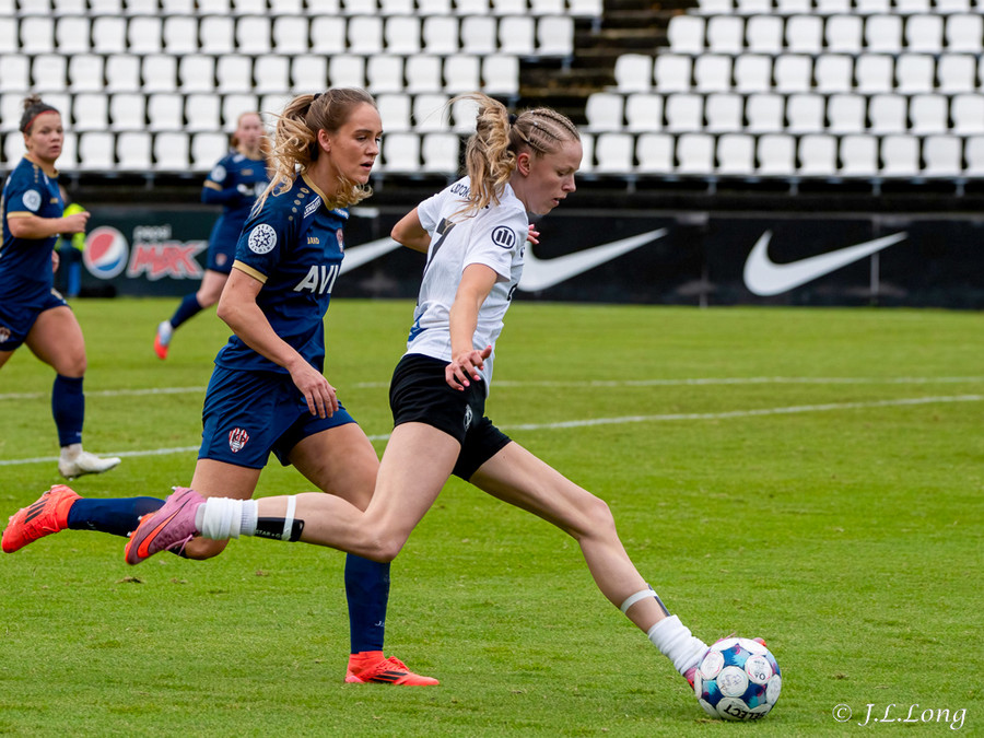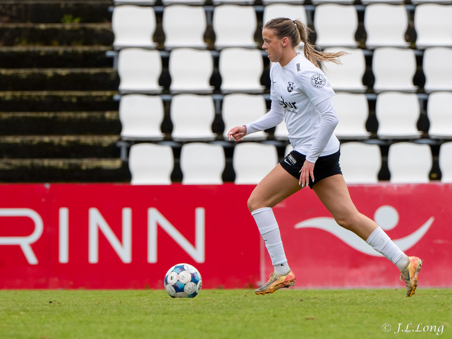 Enn og aftur eru Þróttarar að fljúga á hausinn, Mollee spyrnir löngum bolta fram á Sierru en hún flýgur á hausin þegar hún reynir að koma sér í stöðu til að taka við honum