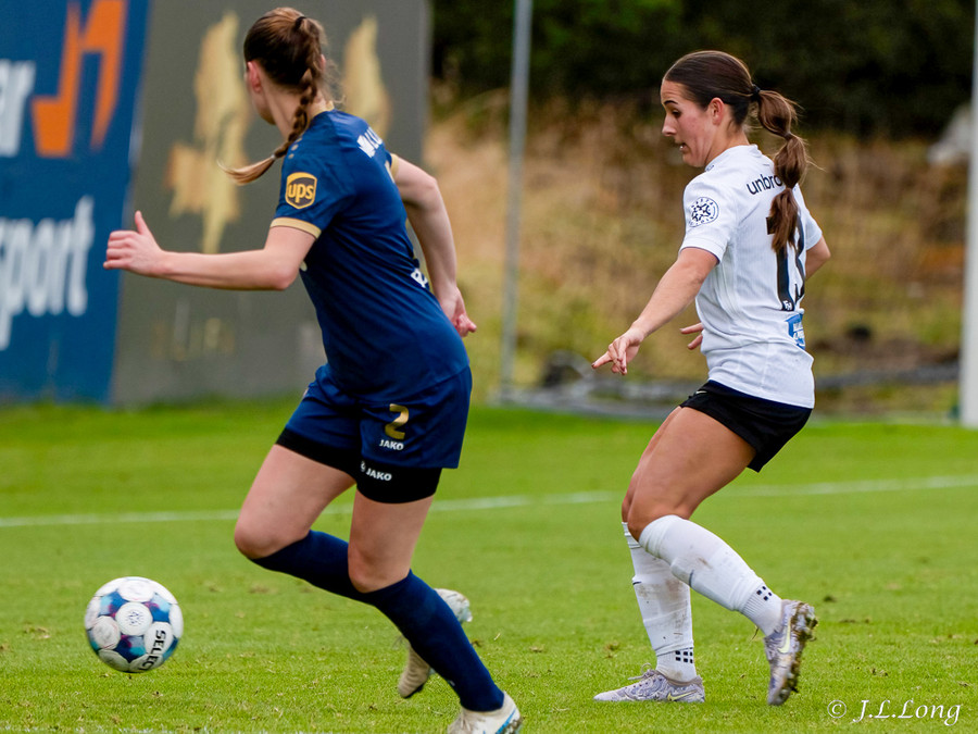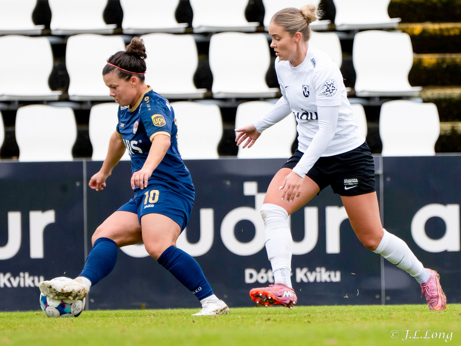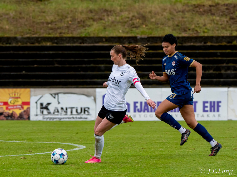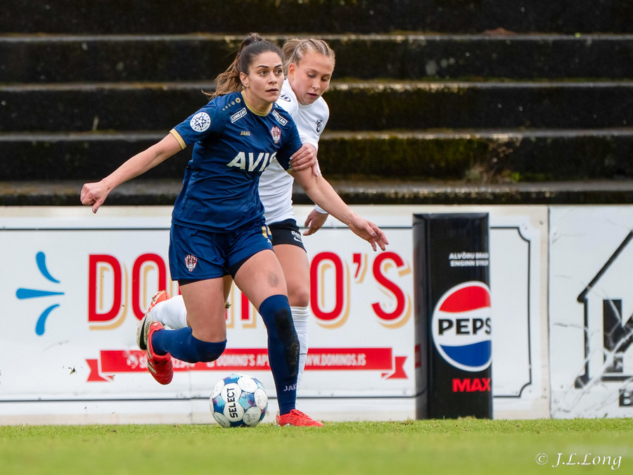 Thelma Lóa tekur boltann með sér og reynir svo skot utarlega í teignum en Mollee Swift á ekki í neinum vandræðum með þennan bolta