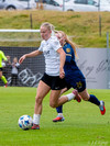 Andrea Rán setur boltann upp á Ingibjörgu, það er alvöru kapphlaup sem endar með að Mist snertir boltann og Ingibjörg sækir horn
