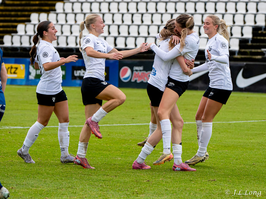 Þær voru ekki lengi að þessu Jónína setur boltann upp í horn þar sem Thelma Karen er öskufljót og allt í einu komin ein í gegn, hún setur hann svo bara í nærhornið þar sem Mollee átti ekki séns