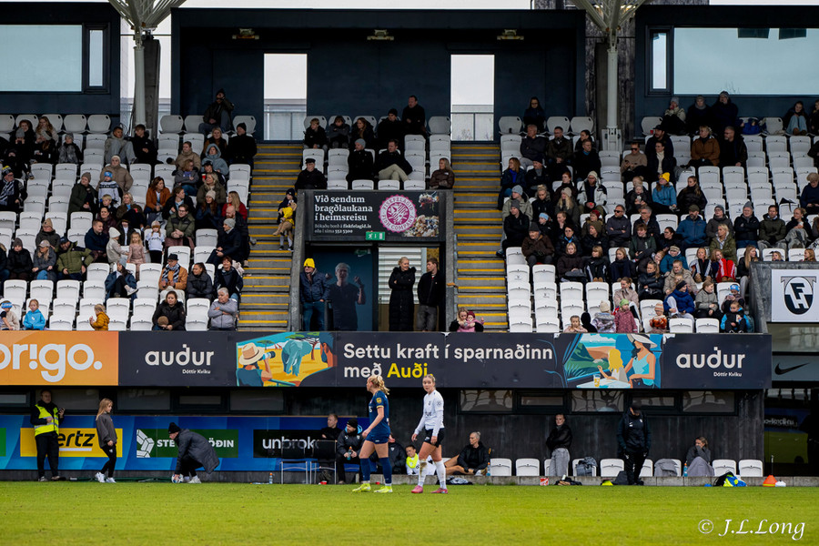 Thelma Karen reynir fyrirgjöf en Cousins kemst fyrir hana, Andrea Rán með hornspyrnuna, mikil barátta í teknum sem endar svo með fyrirgjöf og ágætis skalla frá Margréti Brynju en þó yfir markið