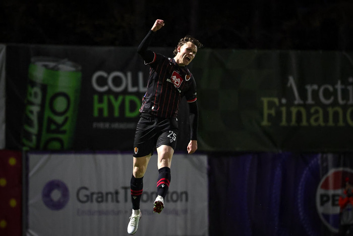 Hafliði Breiðfjörð er á vellinum og náði þessum frábæru myndum af fögnuðinum eftir markið.